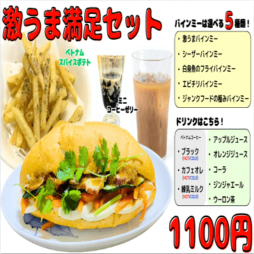バインミー + ベトナムスパイスポテト + ドリンク + ミニコーヒーゼリー