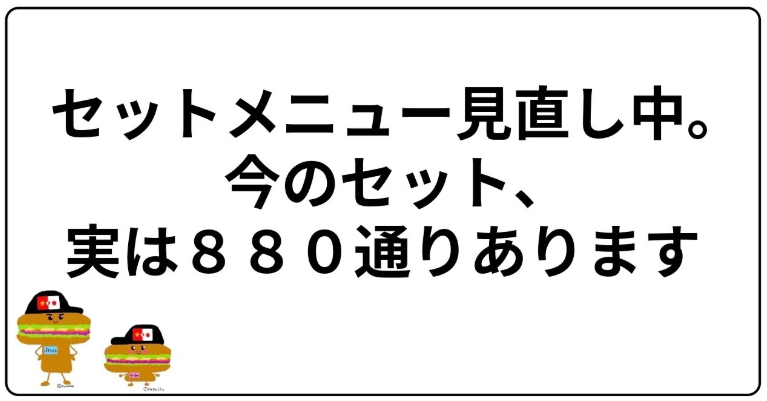 というわけで今回は、セットメニュー見直し中。今のセット、実は880通りありますというお話をさせて頂ければと思います!