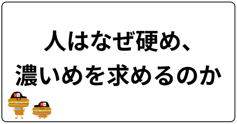 というわけで今回は、人はなぜ硬め、濃いめを求めるのかというお話をさせて頂ければと思います!