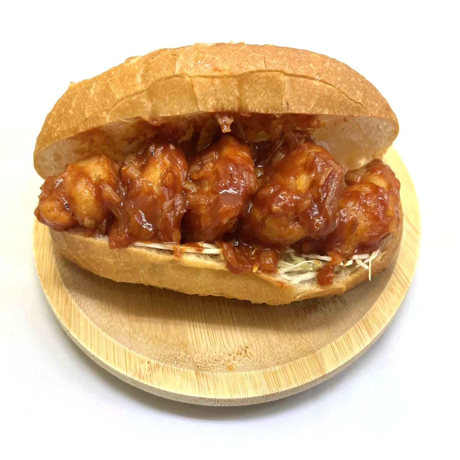 ベトナムのチリソースとケチャップをベースにした自家製エビチリソースと、白ネギの刻んだものと和えたもので、これまためちゃくちゃ美味しいバインミーになっております!