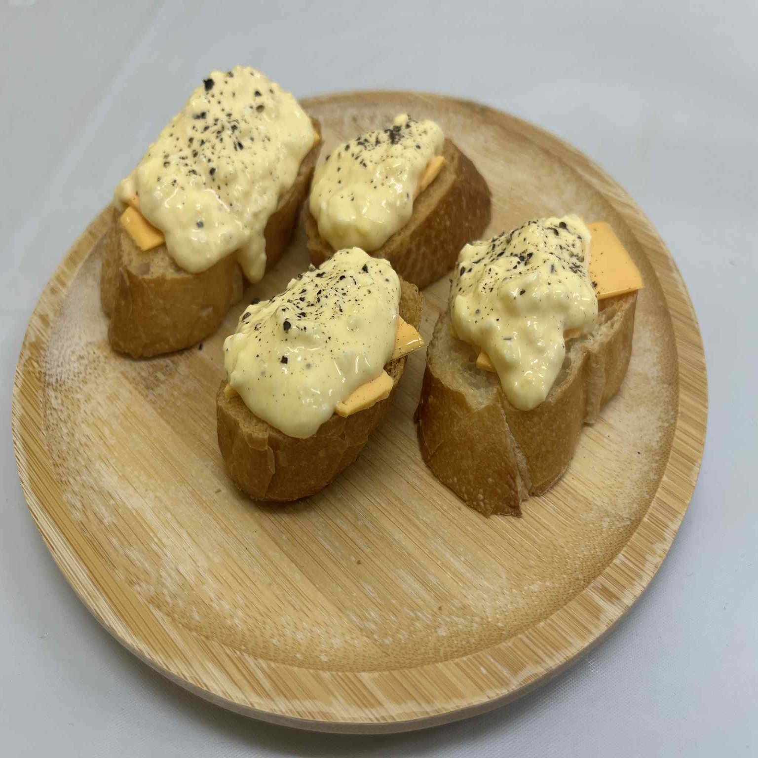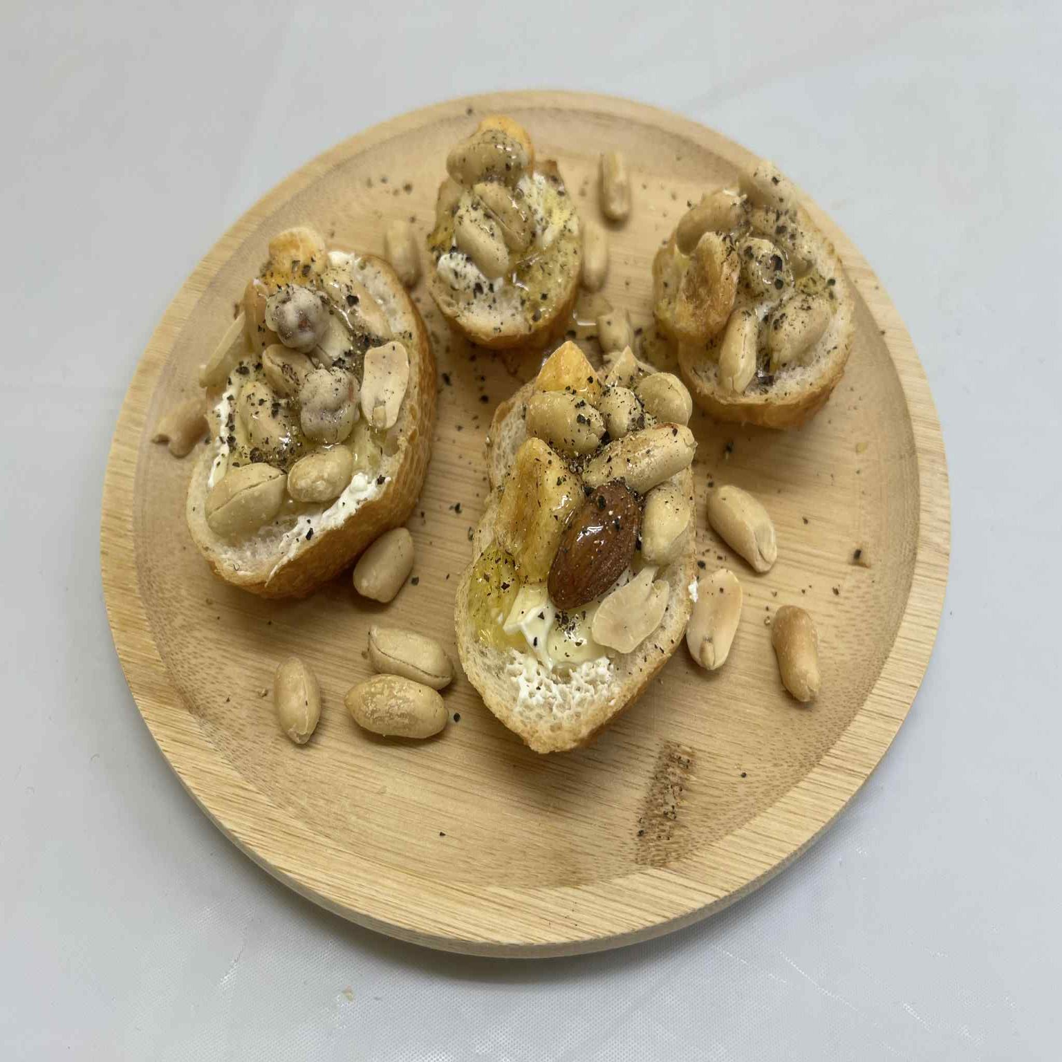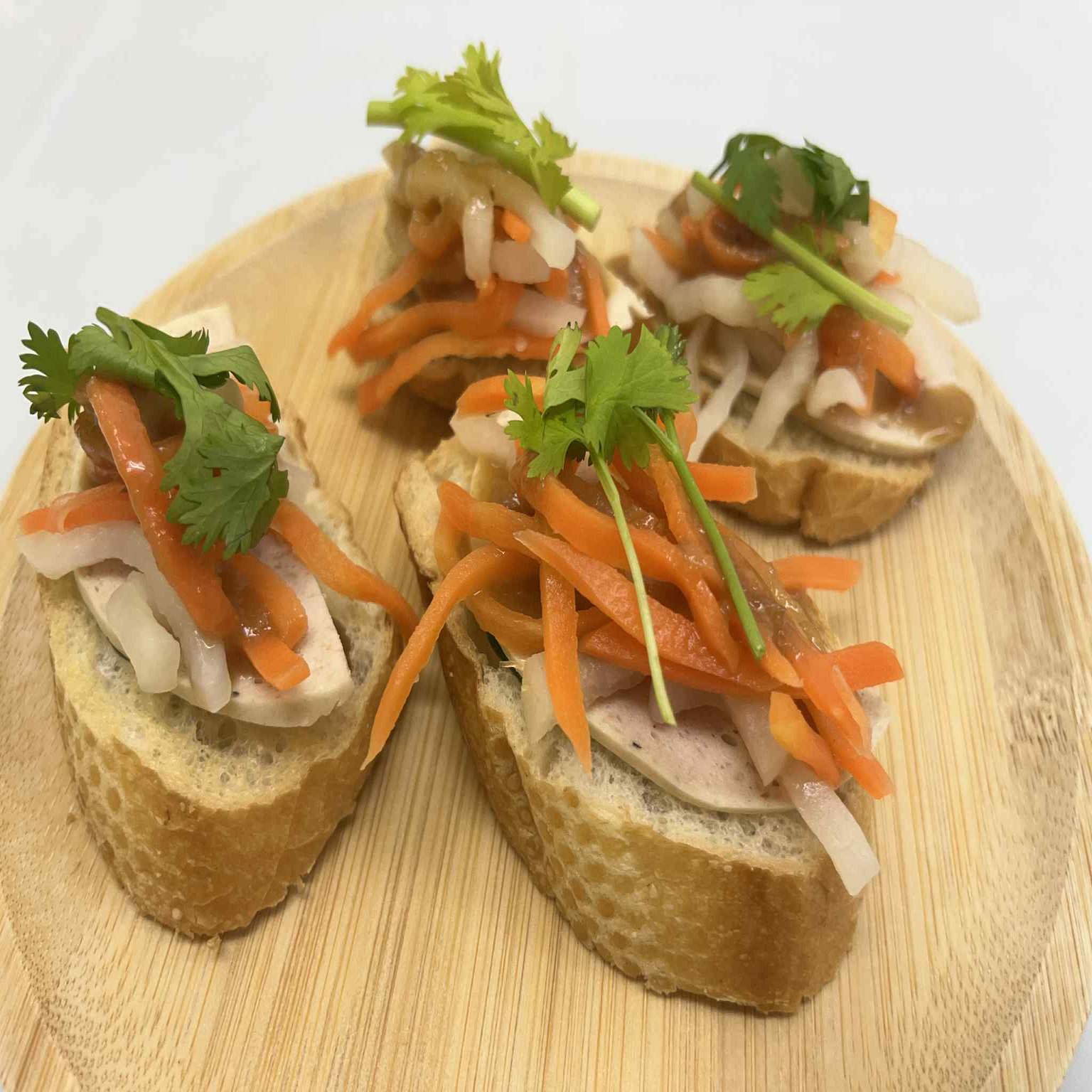 こちらはバインミーのパンを斜めに薄切りにして、その上に具材を乗せたものになります。