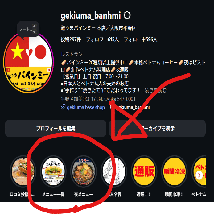 なのでメニューを全てスマホに保存して、それらを全てストーリーに投稿し、それらをハイライトに保存するという作業が必要です。