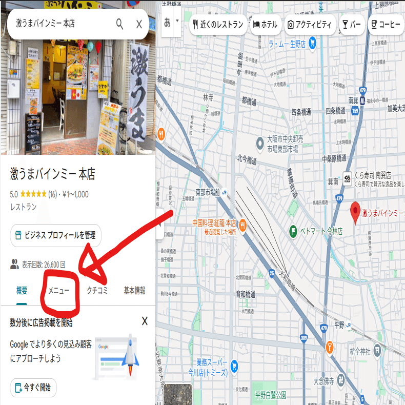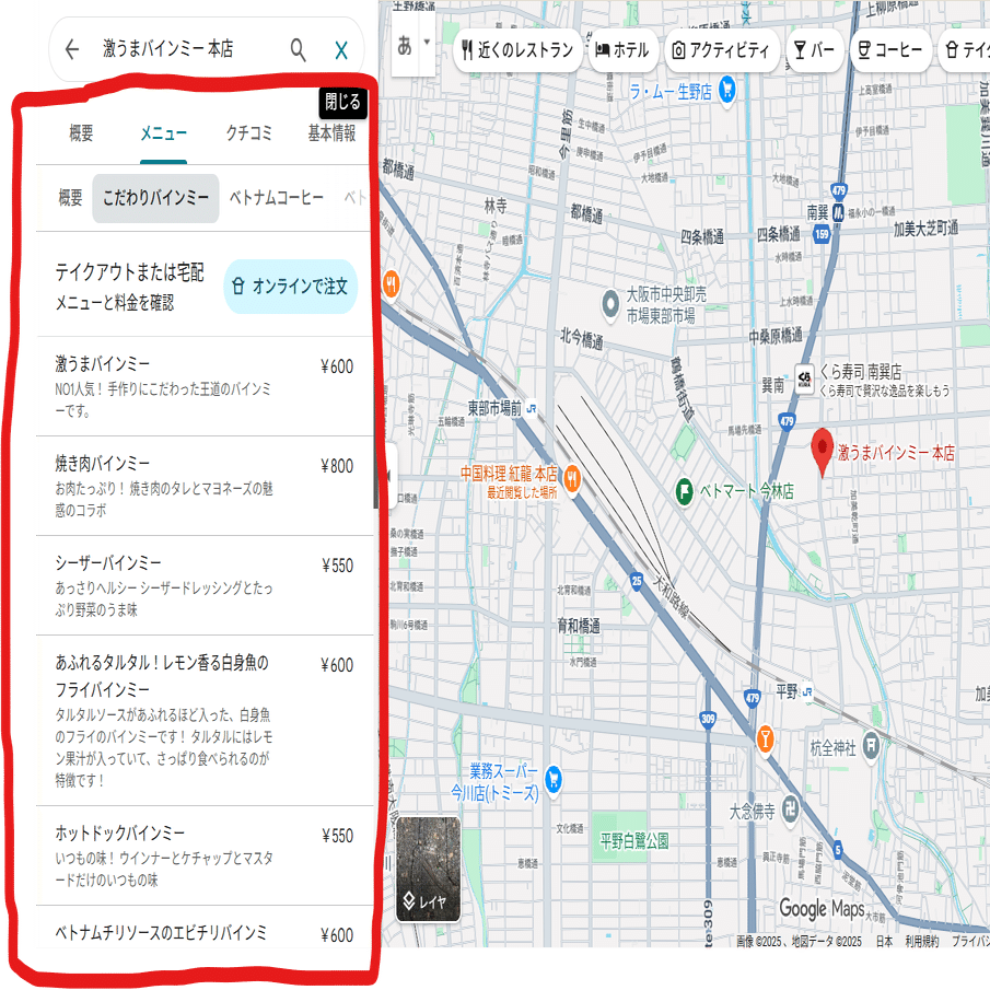 実はGoogleマップにもお店のメニューを表示させる機能があるのです。