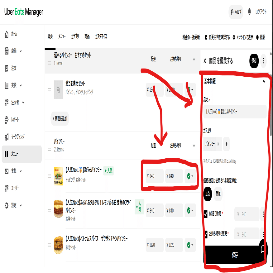 12月に入ってお店のメニューを一新したのと、つい先週に新セットメニューを追加したところなのですが、それらをUber eatsに反映させようと少しづつ修正や追加などを進めておりました。