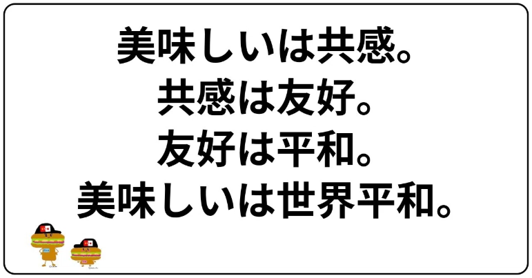 美味しいは共感。共感は友好。友好は平和。美味しいは世界平和。