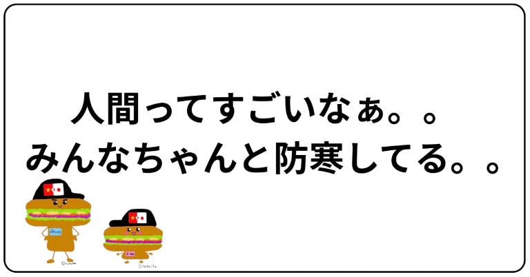 人間ってすごいなぁ。。みんなちゃんと防寒してる。。